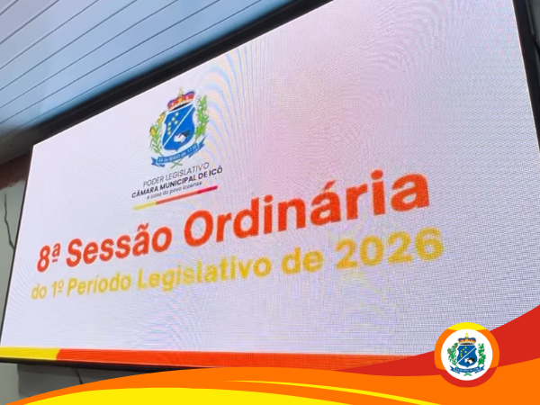 A Câmara Municipal de Icó realizou, nesta quinta-feira (26 de março), às 19h, no Plenário Vereador Antônio Barbosa de Sousa, a 8ª Sessão Ordinária do 1º Período Legislativo de 2026. A reunião contou com a presença dos parlamentares, servidores e da população, reafirmando o compromisso com a transparência e o debate de pautas essenciais para o município.